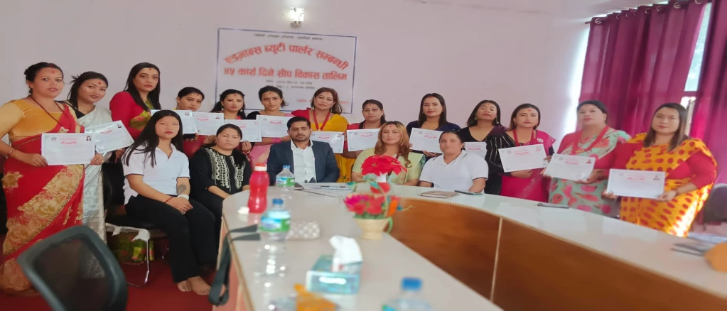 उद्योग तथा वाणिज्य कार्यालय नुवाकोटद्वारा चैत १८ गतेदेखि सञ्चालन भएको ६० कार्य दिने एड्भान्स ब्युटिपार्लर सम्ब…